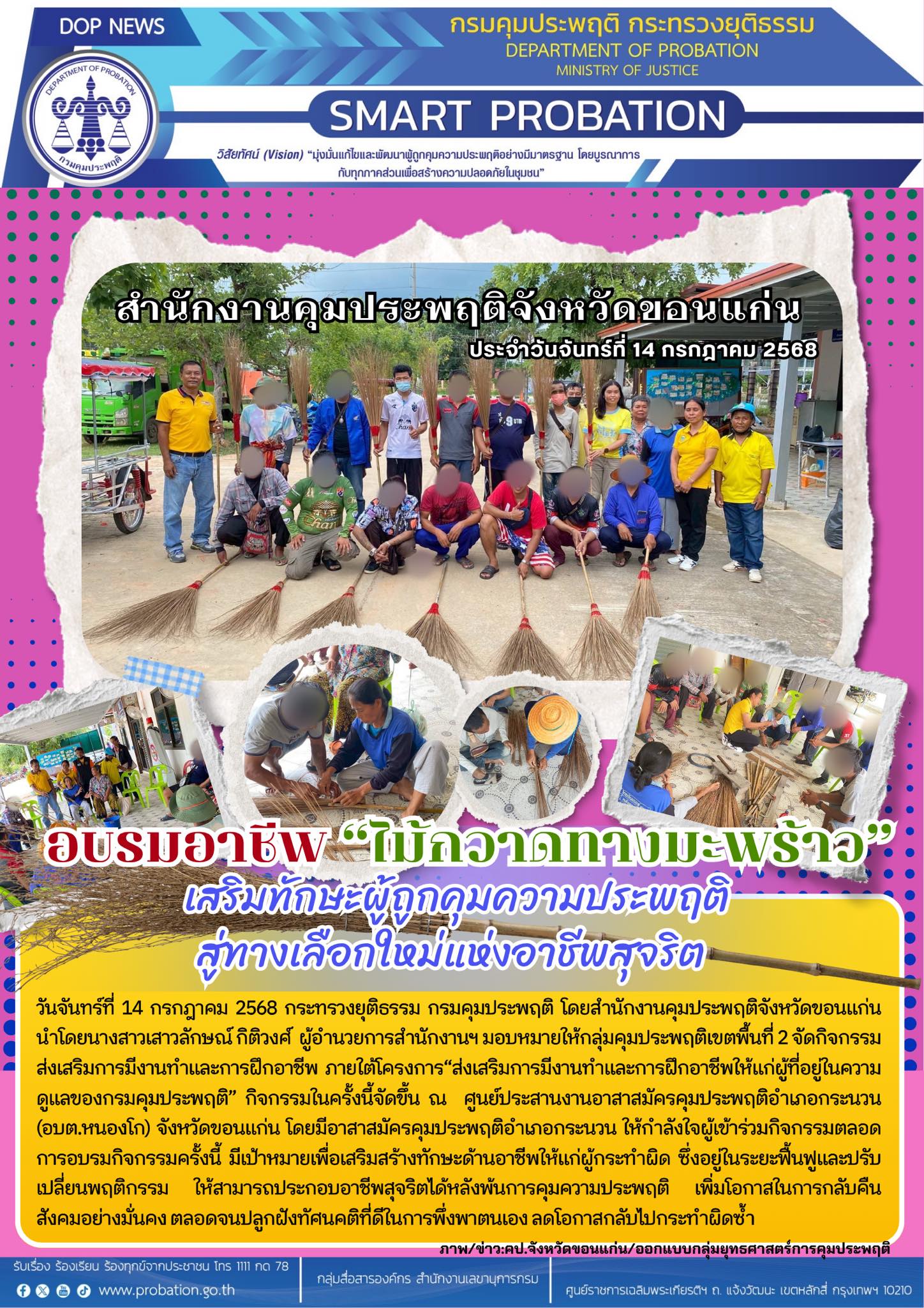 คุมประพฤติจังหวัดขอนแก่น จัดอบรมอาชีพ “ไม้กวาดทางมะพร้าว” เสริมทักษะผู้ถูกคุมความประพฤติ สู่ทางเลือกใหม่แห่งอาชีพสุจริต